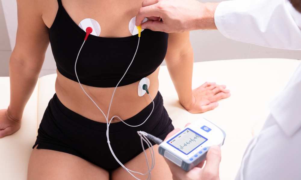 L’ECG (elettrocardiogramma) è l’esame iniziale e più immediato per valutare la salute del cuore. Viene eseguito con un elettrocardiografo e dieci elettrodi applicati sulla pelle del paziente.